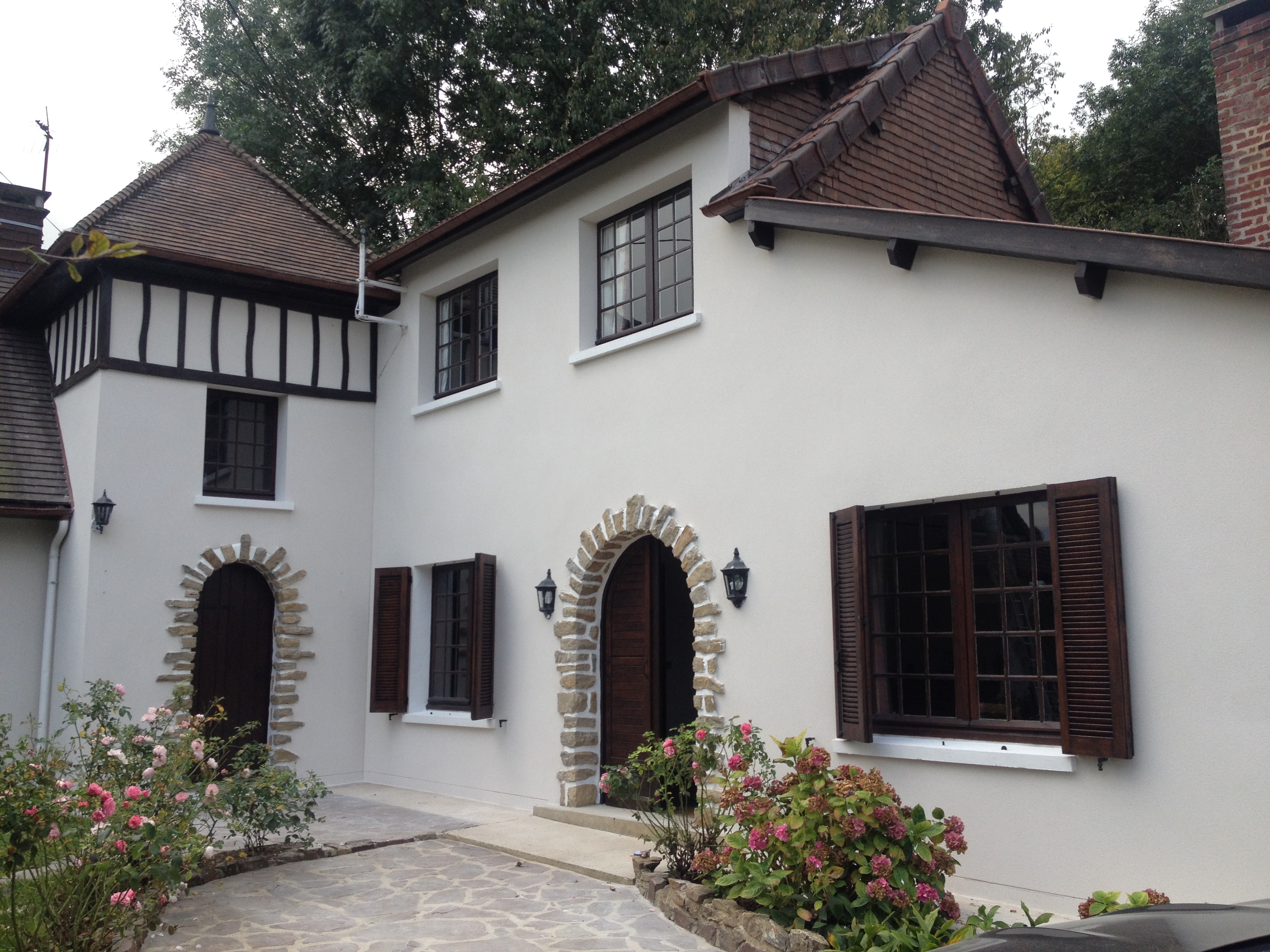 Traitement de façade d’une maison de campagne, traitement des fissures, réfection des peintures des façades, reprise de joints de pierres à l’entrée de la maison.